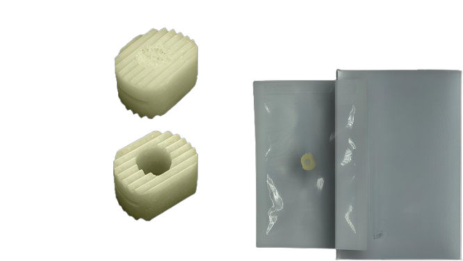 H-GENIN Putty provides a moldable consistency and can be mixed with blood or bone marrow. H-GENIN Putty is used as a bone void filler or extender in posterolateral fusion procedures. The Putty has excellent handling characteristics and resists washing away when irrigated.